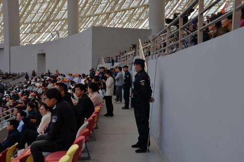 全體執勤人員于今早6點(diǎn)到崗,堅持“安全第一”的原則,按照整體布防、文明執勤的方式,各安保小組協(xié)同作戰、密切配合、層層把關(guān),圍繞進(jìn)入口、檢票口、入場(chǎng)口、看臺區及會(huì )場(chǎng)外圍進(jìn)行執勤安保和巡邏防控,建立了*嚴密的安保防線(xiàn),構筑了*堅固的安保屏障,為廣大群眾營(yíng)造了一個(gè)安全、穩定、有序的開(kāi)幕式環(huán)境。